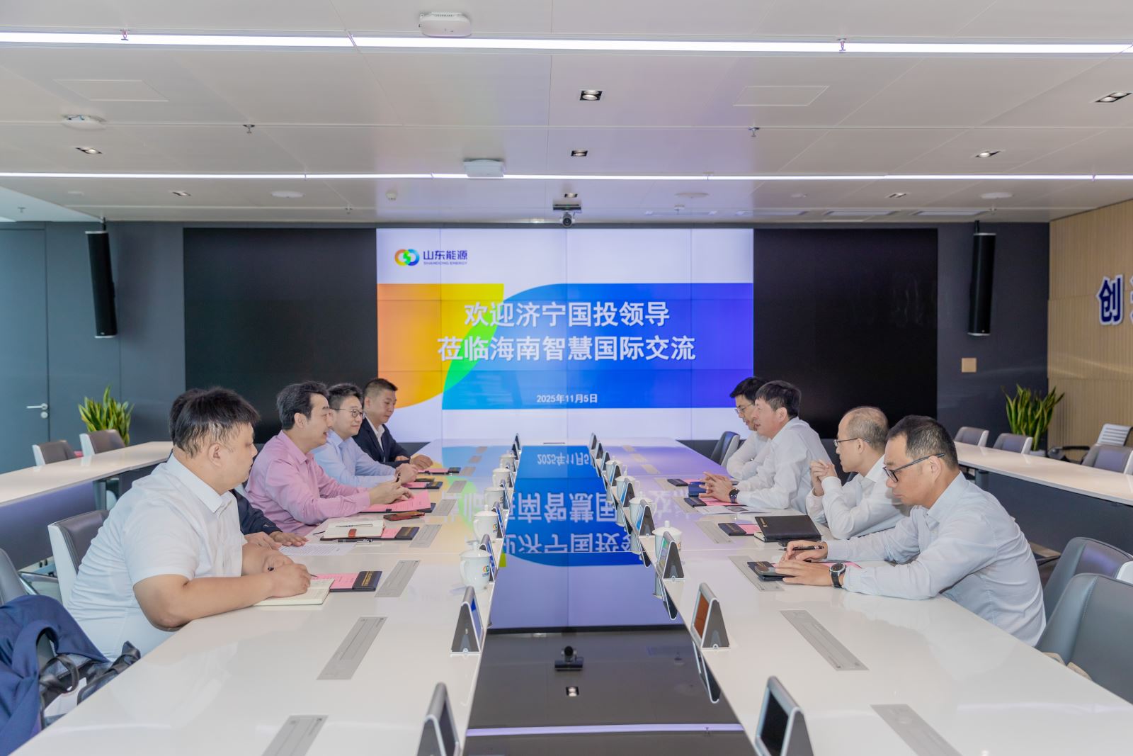 在山東能源(海南)智慧國際科技發展有限公司,虢洪增一行與該公司總經理劉光進交流座談。劉光進全面介紹了山能智慧國際的產業發展、“十五五”期間重點發展目標以及海口江東新區“總部經濟區”的戰略規劃與發展前景。虢洪增詳細介紹了濟寧國投在金融投資、現代貿易等領域的產業優勢和發展成就,對山能智慧國際在智慧能源領域的技術創新和市場拓展成果表示高度贊賞。雙方圍繞能源貿易協同、跨境業務合作等方面達成初步合作意向,一致表示將建立常態化溝通機制,加強與山能智慧國際及海南能源交易中心的深度合作,共同為海南自貿港能源產業高質量發展貢獻力量。同時,進一步拓展合作空間、深化合作內容,對康養項目融合方面探索多元化合作模式、拓寬合作邊界,為后續務實合作達成多項共識。